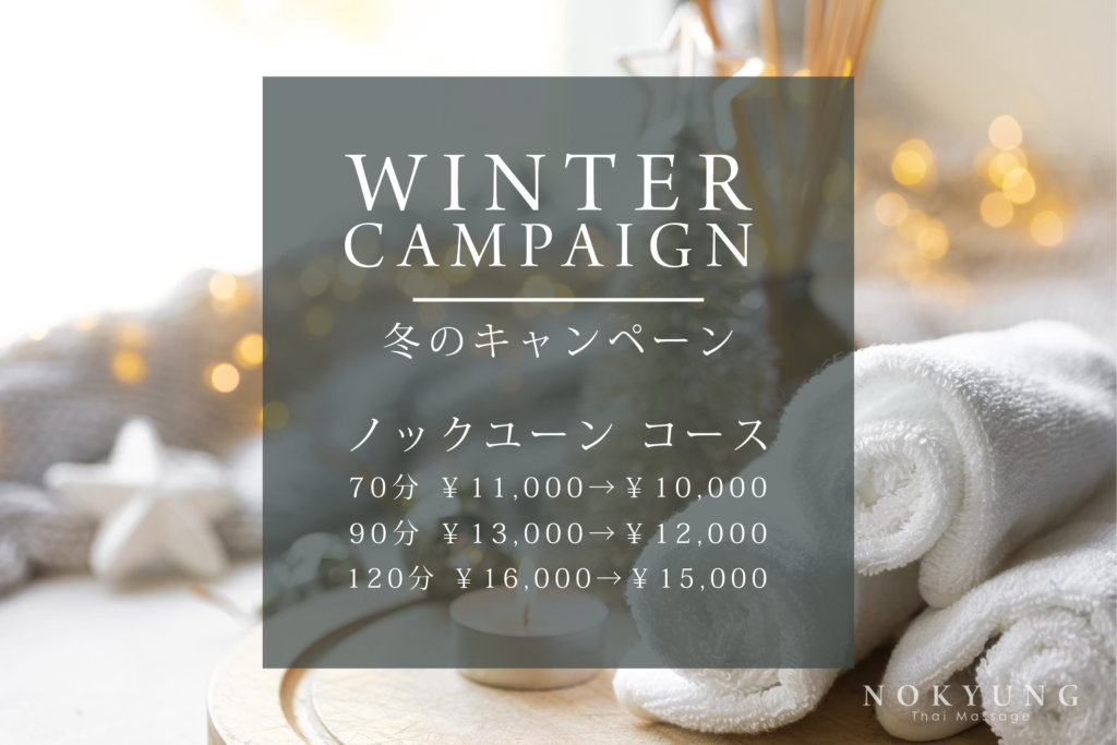 サワディーカー 御徒町・上野のタイ古式マッサージ店「ノックユーン タイマッサージ」です。 上野・御徒町のノックユーン タイマッサージでは、冷えや冬特有の疲れが増えるこの季節に合わせて、特別な「冬のキャンペーン」をご用意い […]